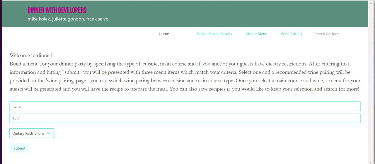 - Project URL: Dinner with Developers